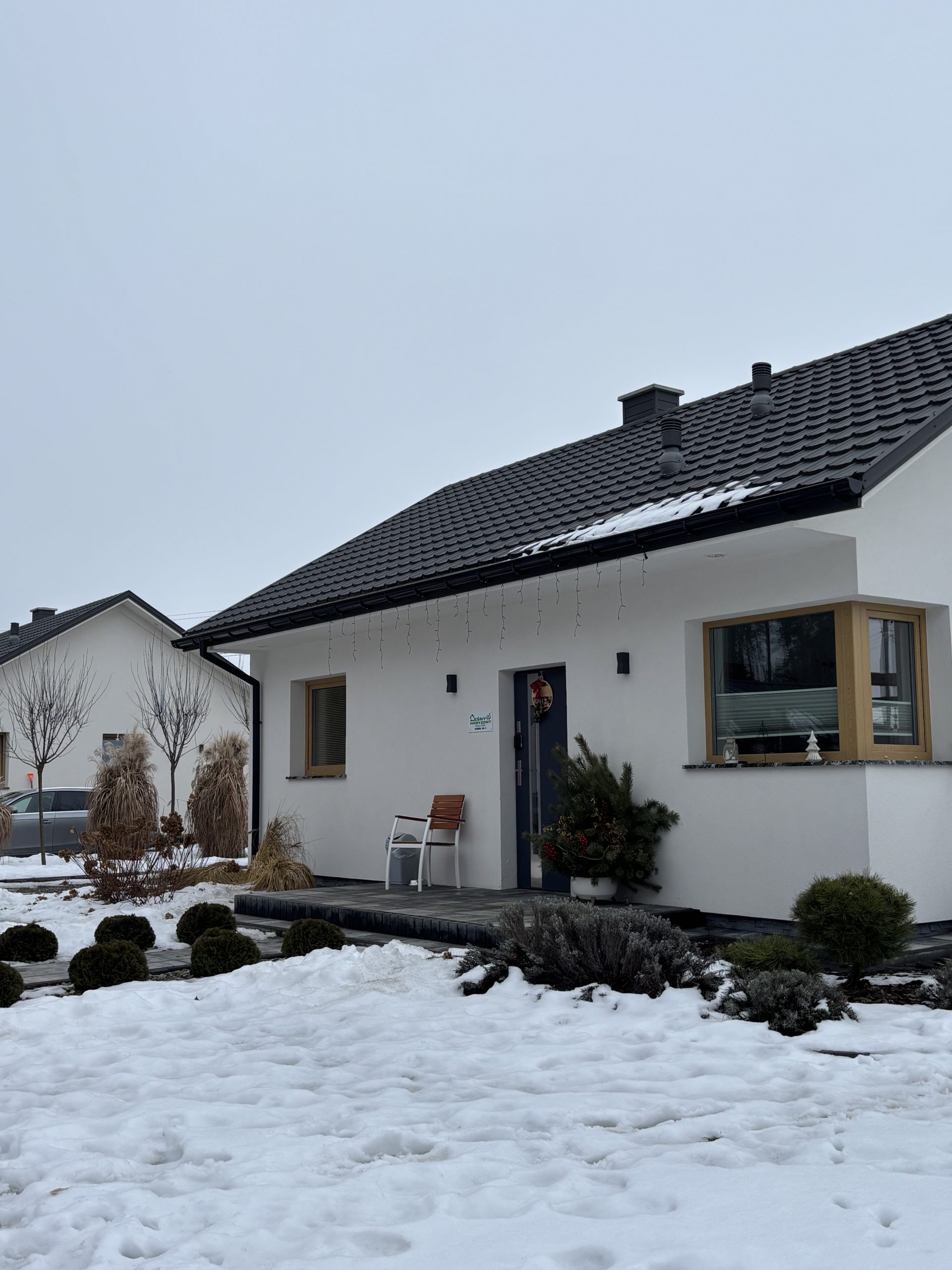 Cały kompleks jest ogrodzony a każdy z klientów ma zapewnione miejsce parkingowe tuż obok domku.