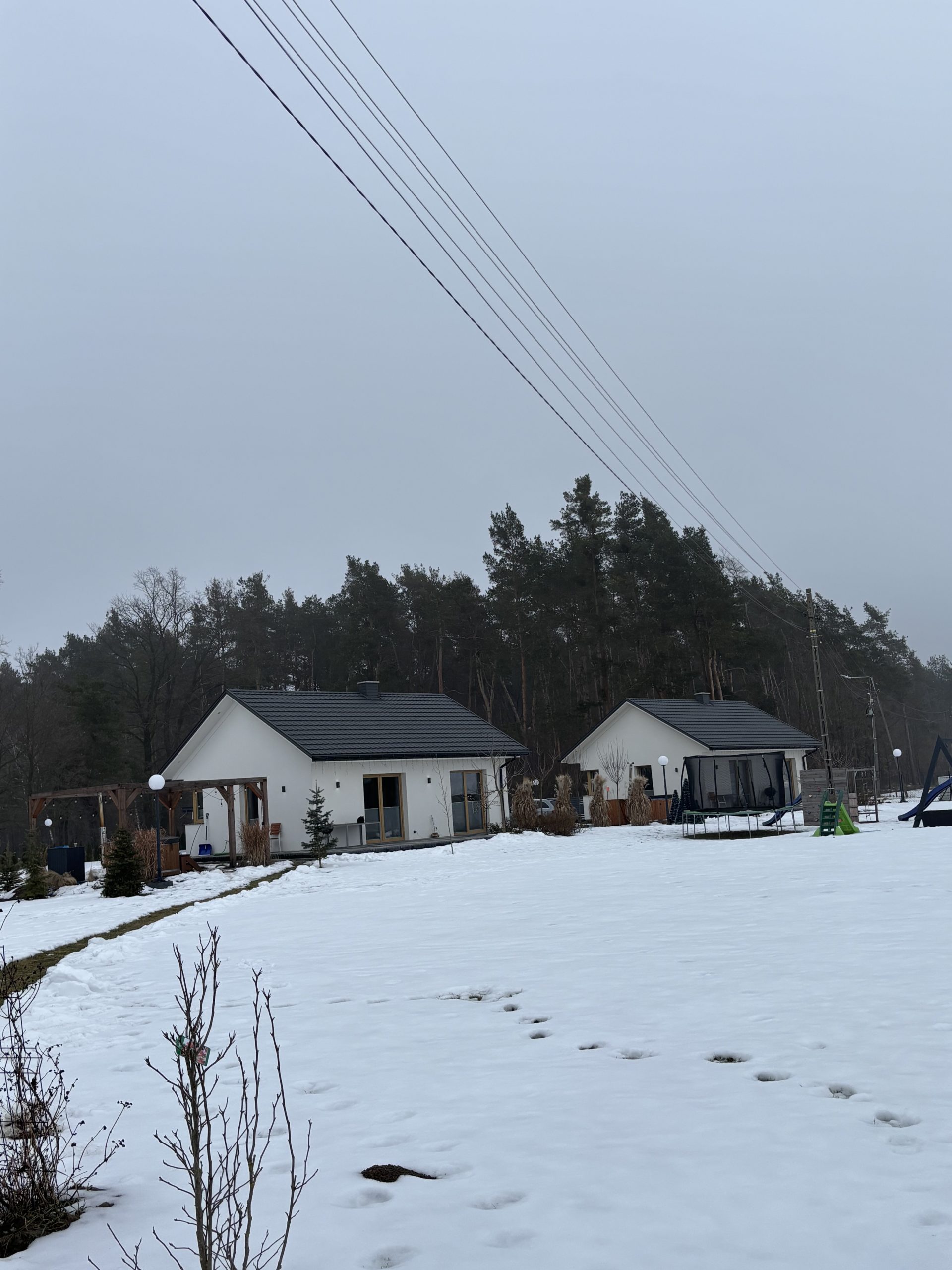 Nasze domki zlokalizowane są u podnóża lasu w cichej i spokojnej okolicy.